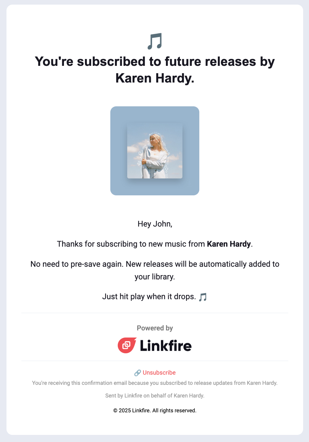 Yes—there are two ways to stop receiving new music or notifications from artists you've subscribed to via a Linkfire pre-save.